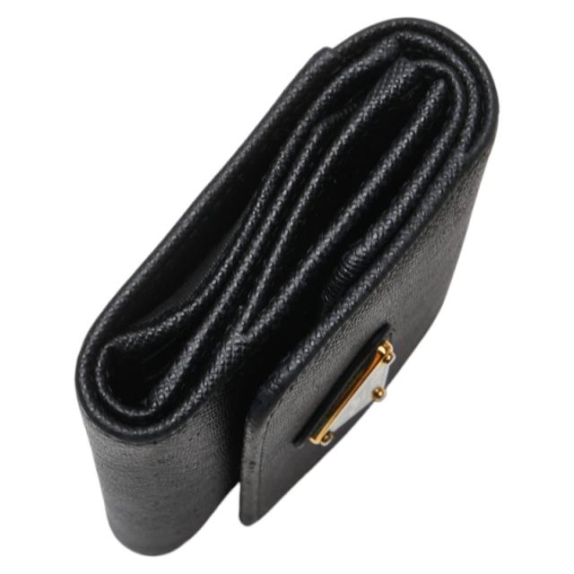 • プラダ 三角ロゴプレート 二つ折り財布 ブラック レザー レディース